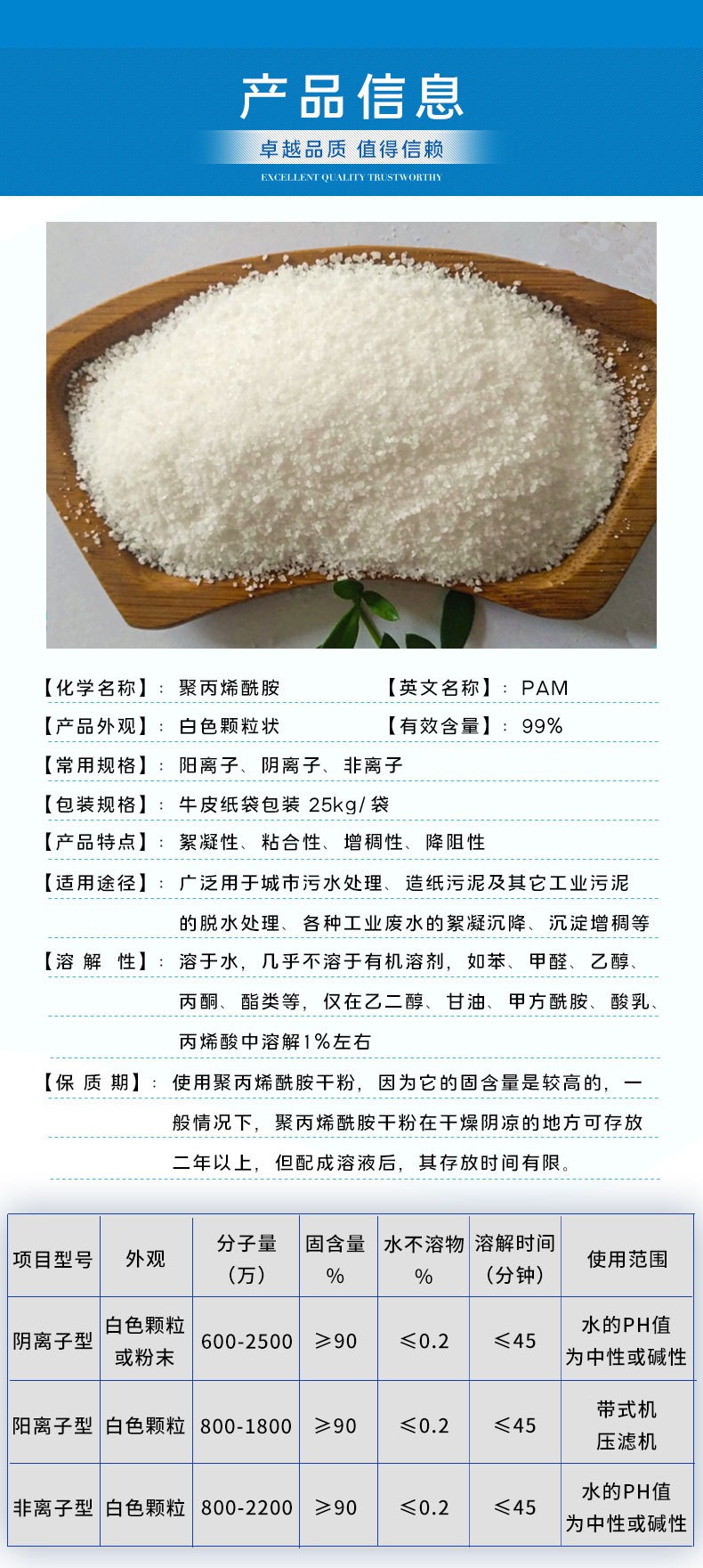 陽離子聚丙烯酰胺、陰離子聚丙烯酰胺、非離子聚丙烯酰胺等,不管什么行業(yè)的什么水質(zhì),選對(duì)型號(hào)是很關(guān)鍵的。